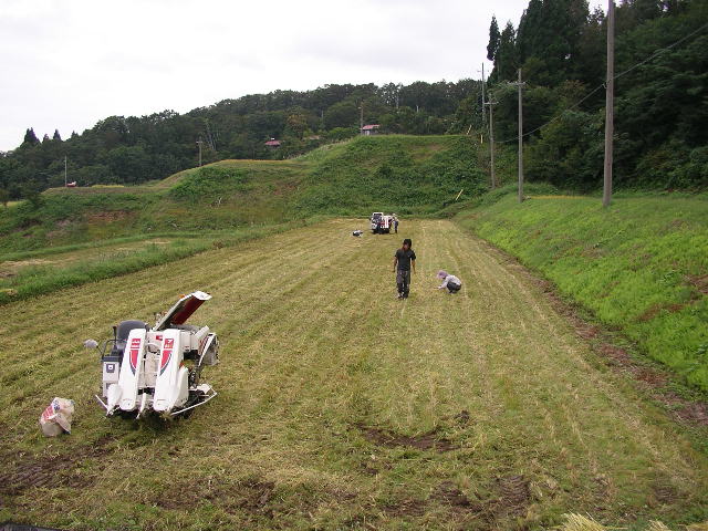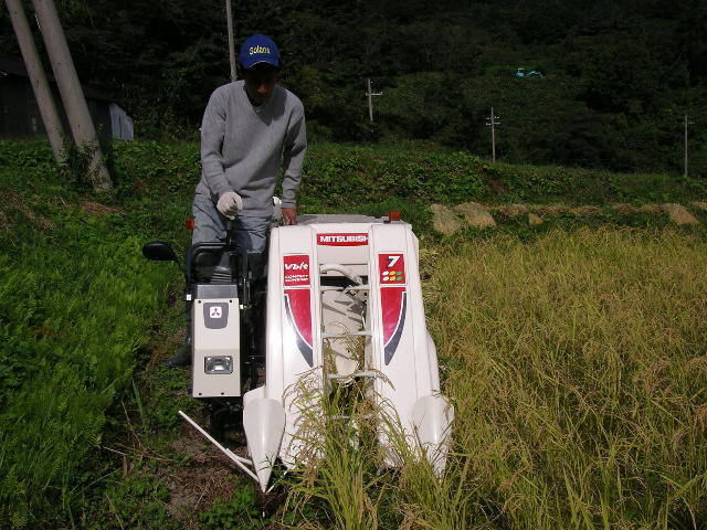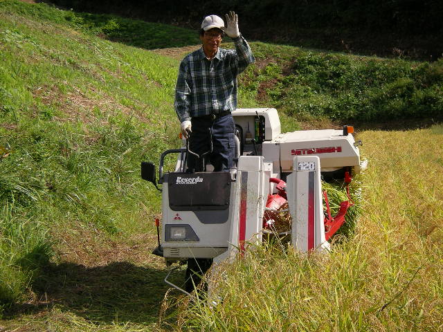 我々の棚田とは違って、ほ場整備された形の良い長方形の棚田ですのでコンバインも楽々で作業が出来ます。