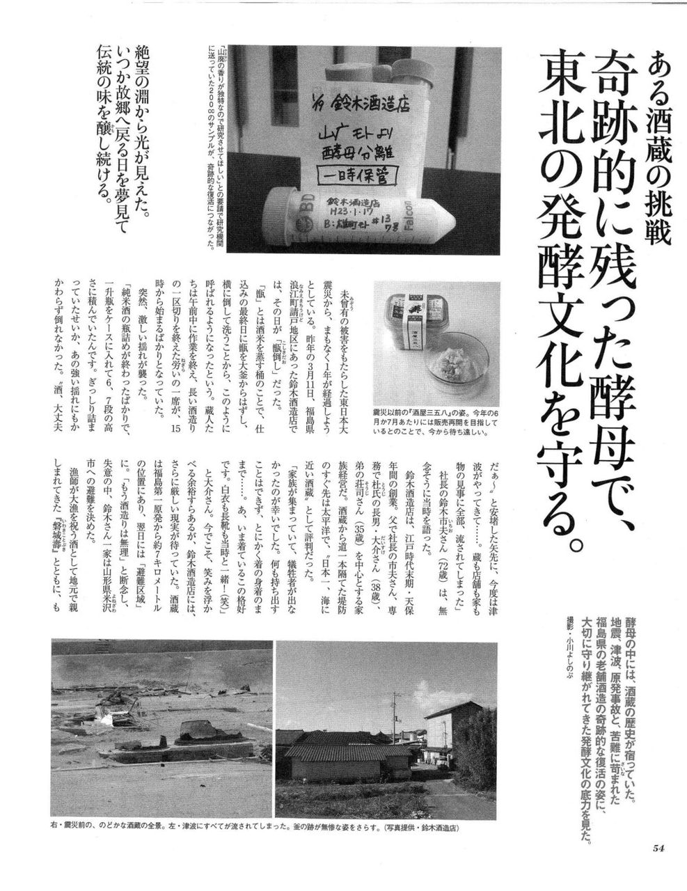 大学の研究室の後輩、鈴木君の蔵は、「日本一、海に近い酒蔵」として知られていたそうです。そんな蔵が津波で流されたにもかかわらず、山形の酒蔵でみごとに復活しました。