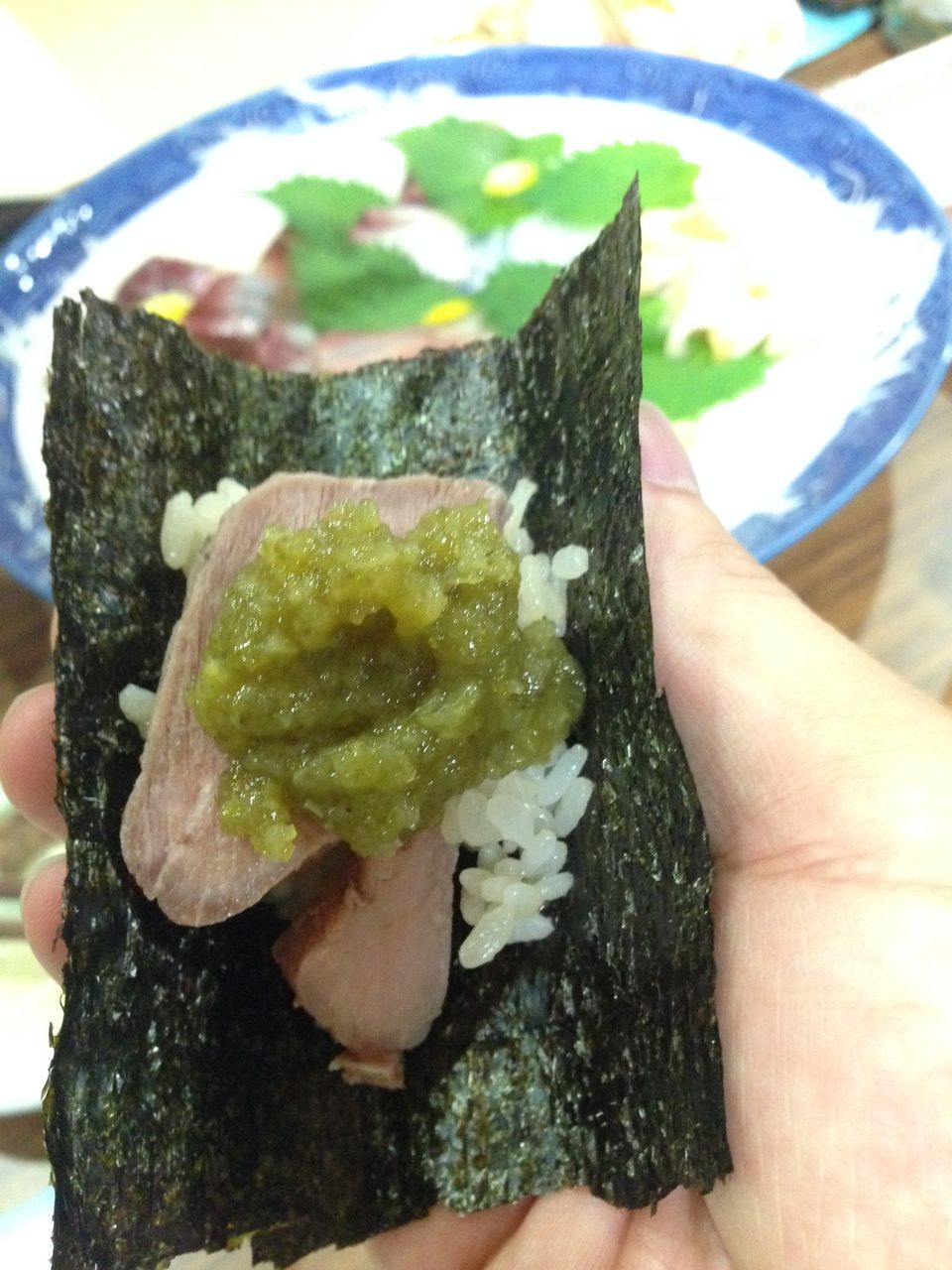 四代目、毅が近所の漁港で買ってきた鯵を富士酢プレミアムで締めてくれました。やわらかい酸味で美味しかった。
