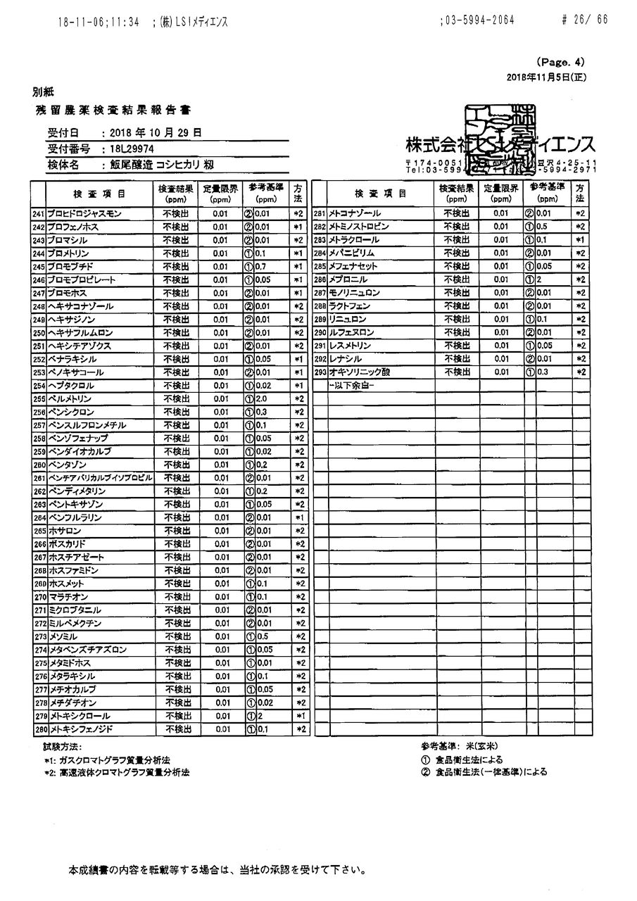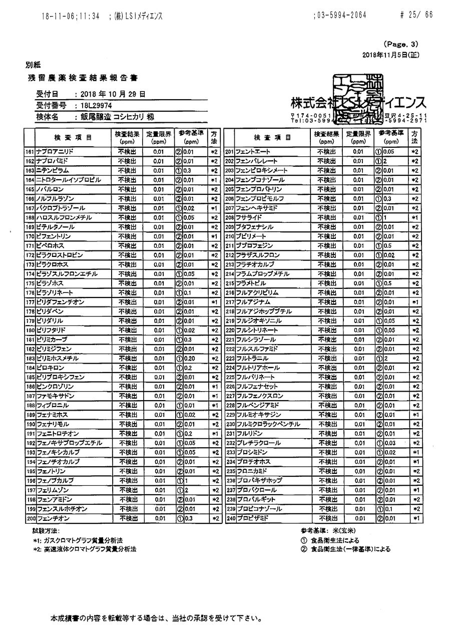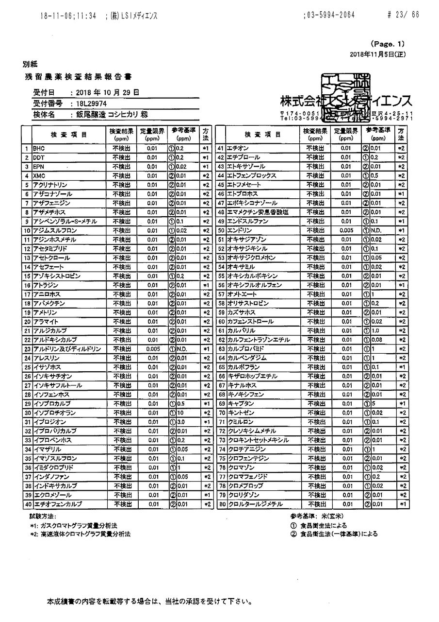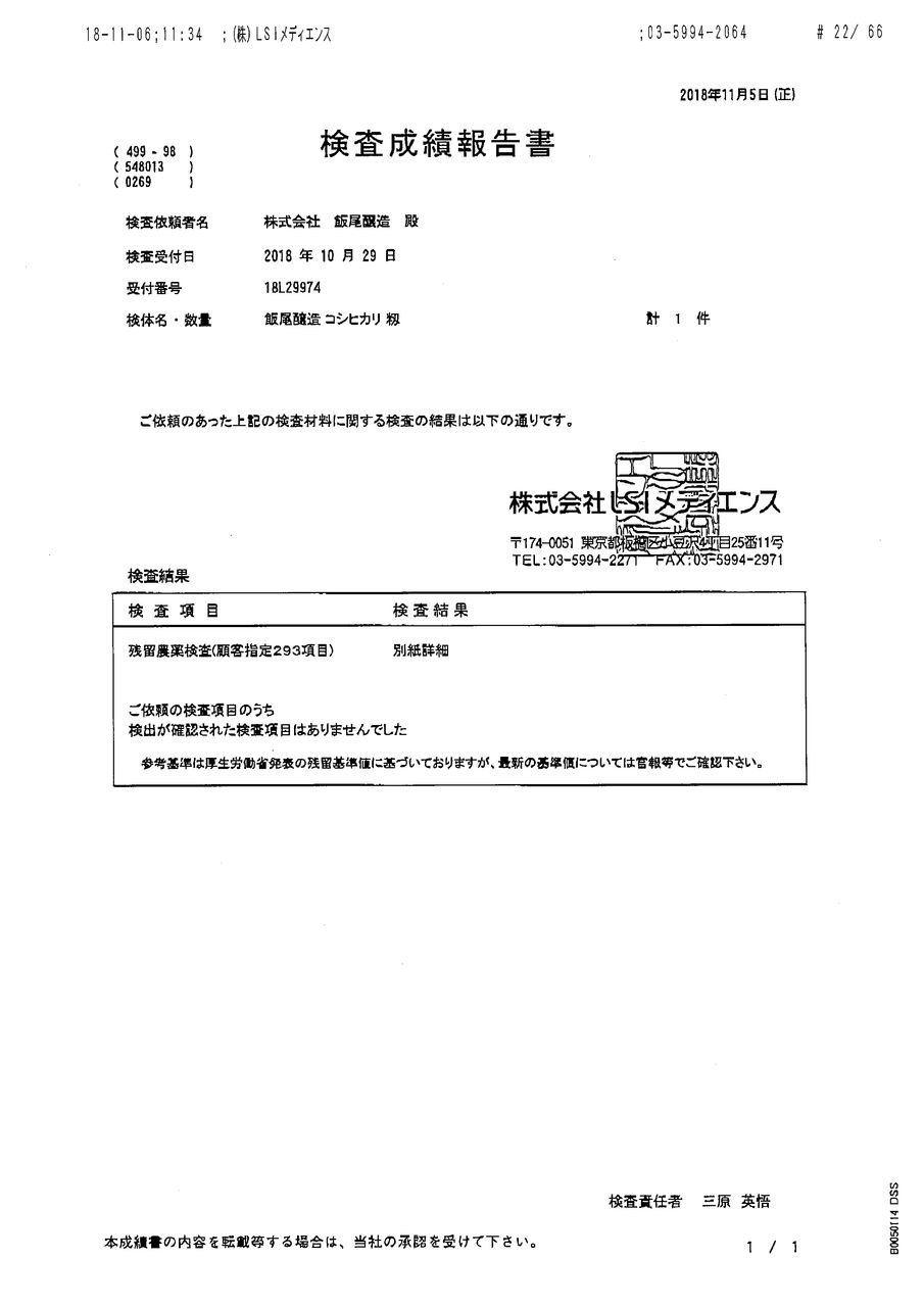 2018年11月08日 今年のお米も残留農薬検査、不検出でした 飯尾醸造で使用するすべての米は、地元丹後産・農薬不使用栽培です。 栽培履歴のチェックと合わせて、国内で流通している農薬を網羅する、293項目の残留農薬検査を実施しています。対象はすべての生産者、自社と契約農家と合わせて15件程です。10年以上継続していて、今年も含めて農薬を検出したことはありません。当たり前ではありますが。栽培中に外気に接している「籾つき」の状態で検査ですので、周辺からの飛散リスクにも対応しています。 これからも皆様に安心して、美味しく使っていただけるお酢を造り続けます。 「商品情報」カテゴリの最新記事 < 前の記事次の記事 > コメント コメントフォーム 名前 コメント 記事の評価 リセット リセット 顔 星 情報を記憶 コメントを投稿する