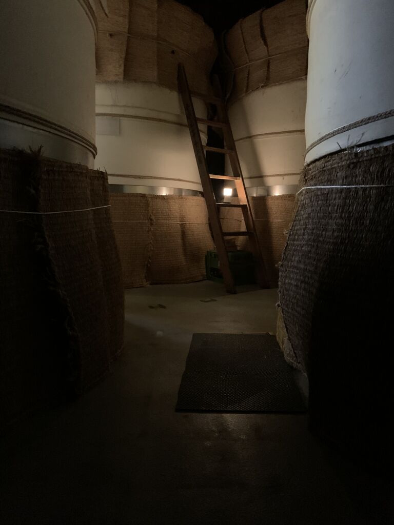 冷気から発酵タンクを守る為にタンク下部にムシロを巻きます。