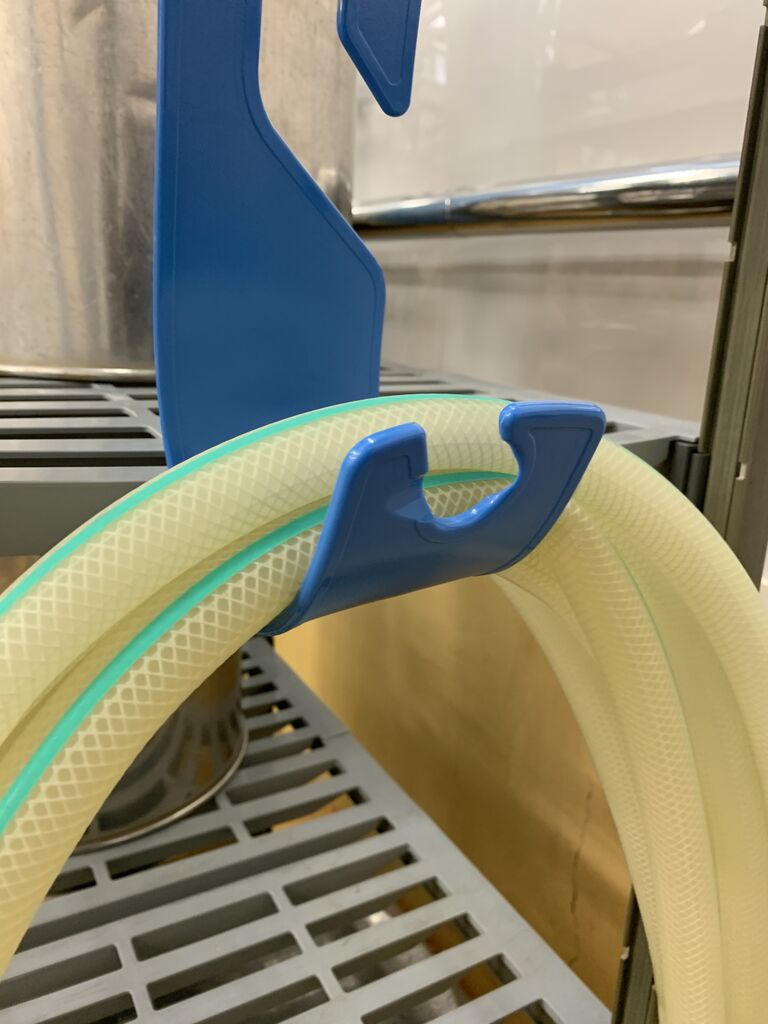 写真の通り、現在はステンレスのフックにホースを束ねて収納しています。