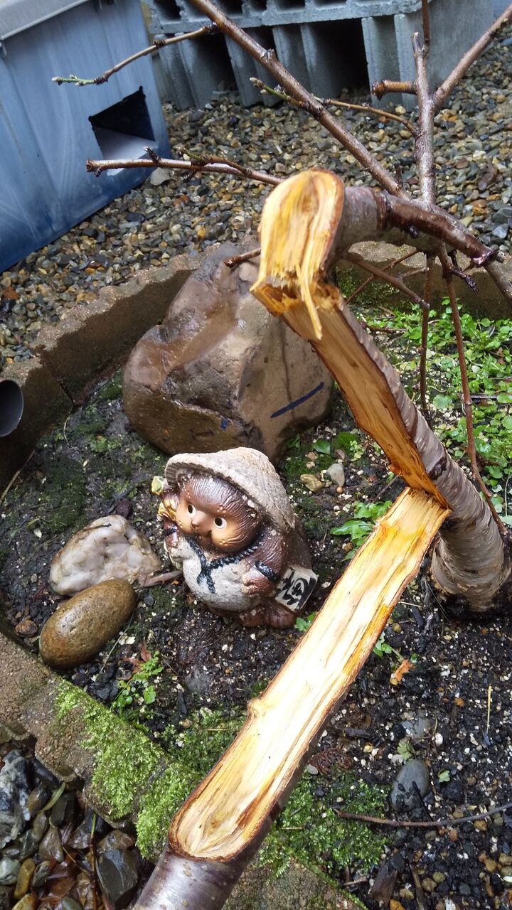 桃の木が、桃の木がおおお お折れている