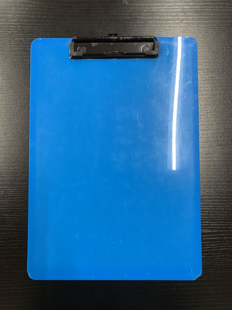 また、記入する用紙を挟む為にクリップボードを使用していましたが、今まではプラスチック製のクリップボードを使用していました。