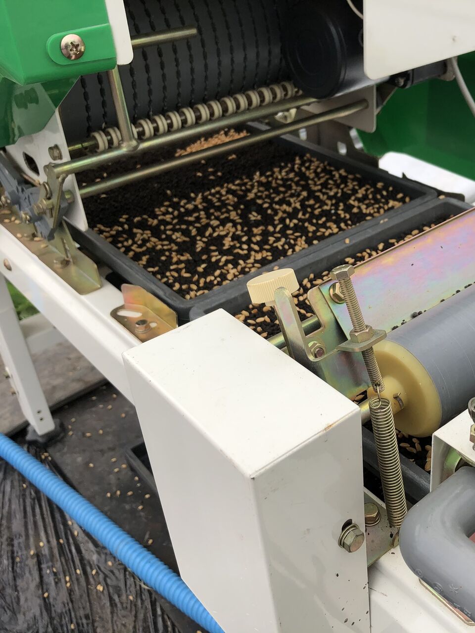 冬は酒蔵→春は本社の瓶詰めラインに戻ってまいりますが、先日は瓶詰めが無かった為、田んぼへ田植えの準備(種蒔き作業)に。