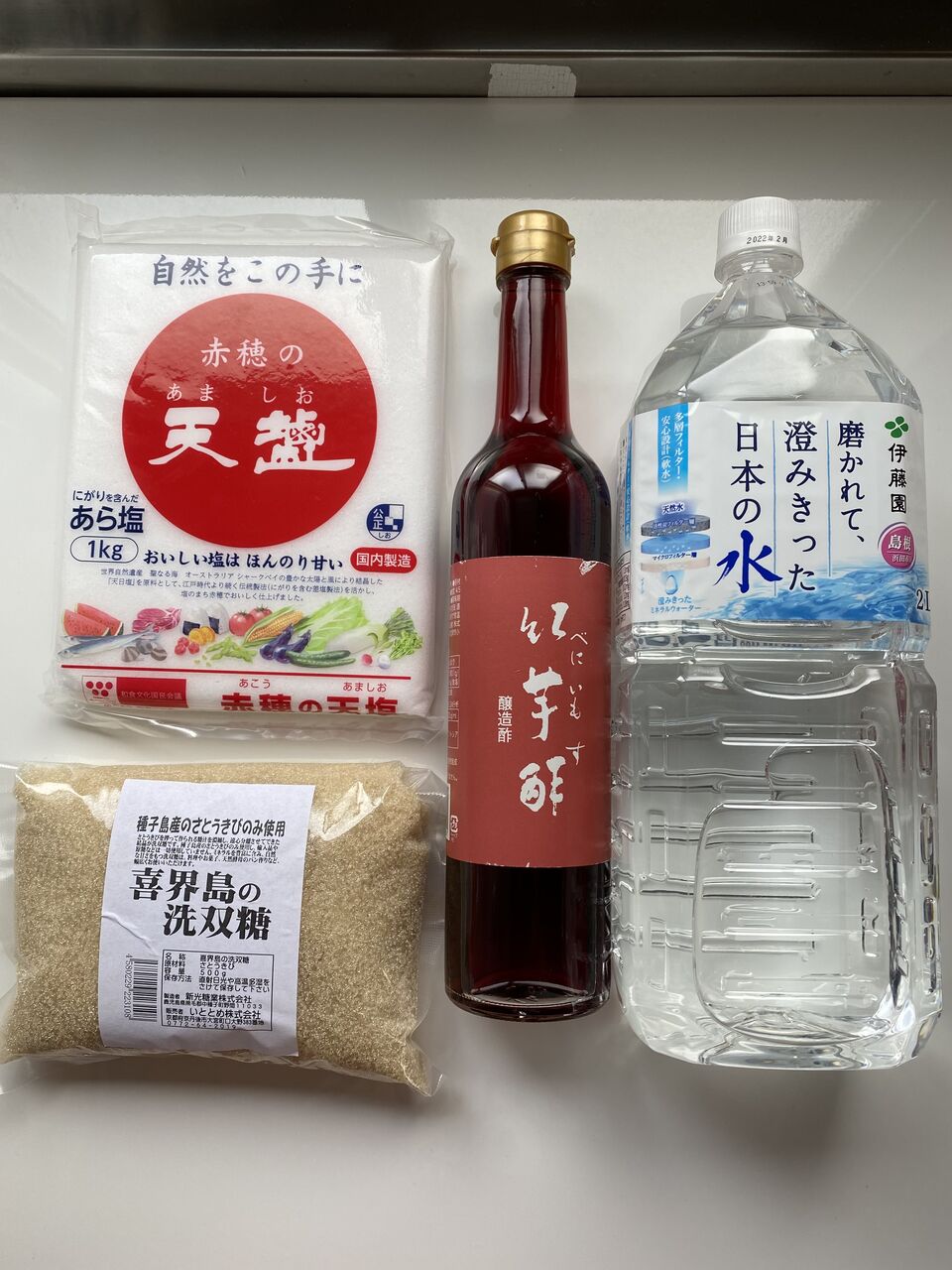 砂糖・塩に加え、紅芋酢を投入