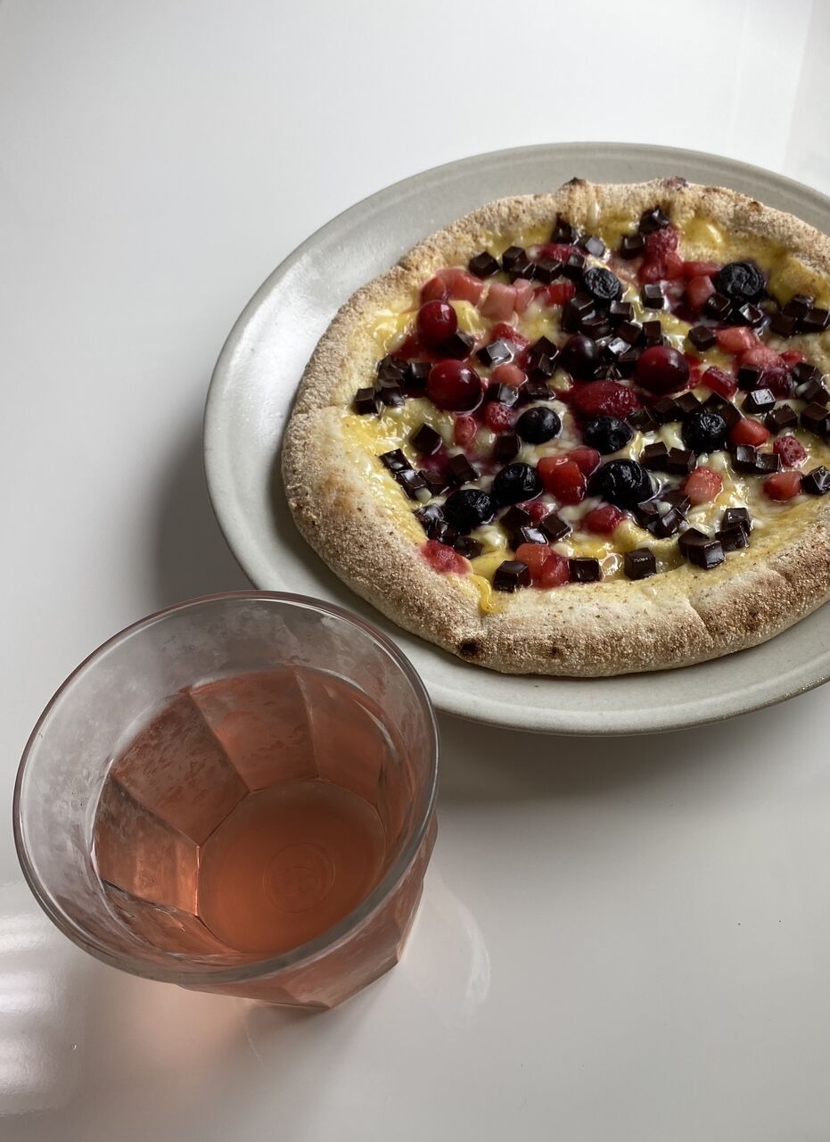 最初の一杯は奮発してデザートピザと!