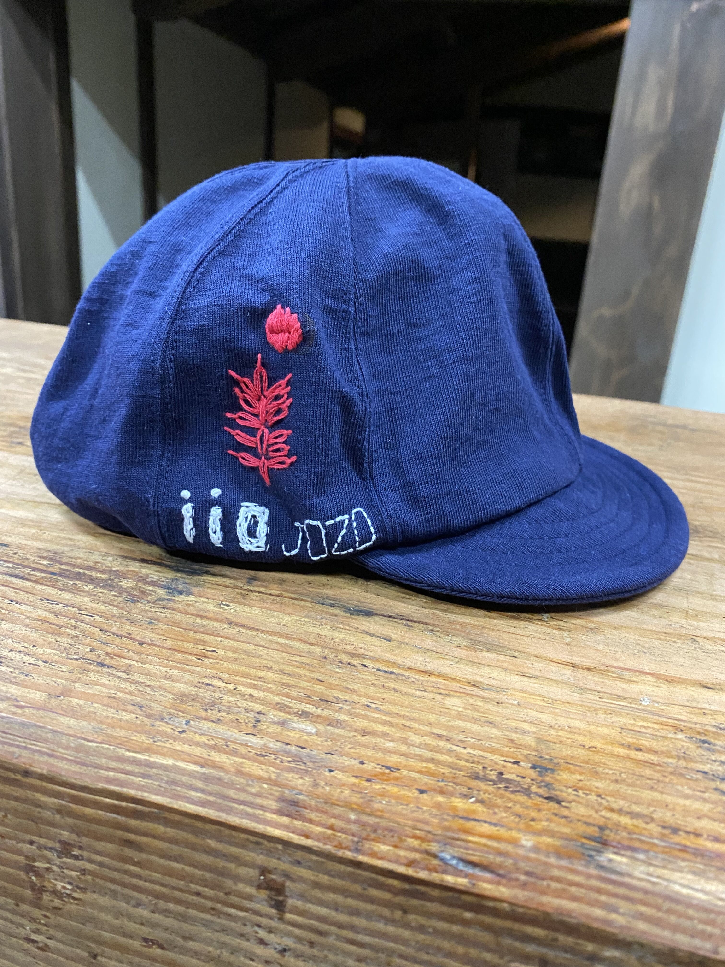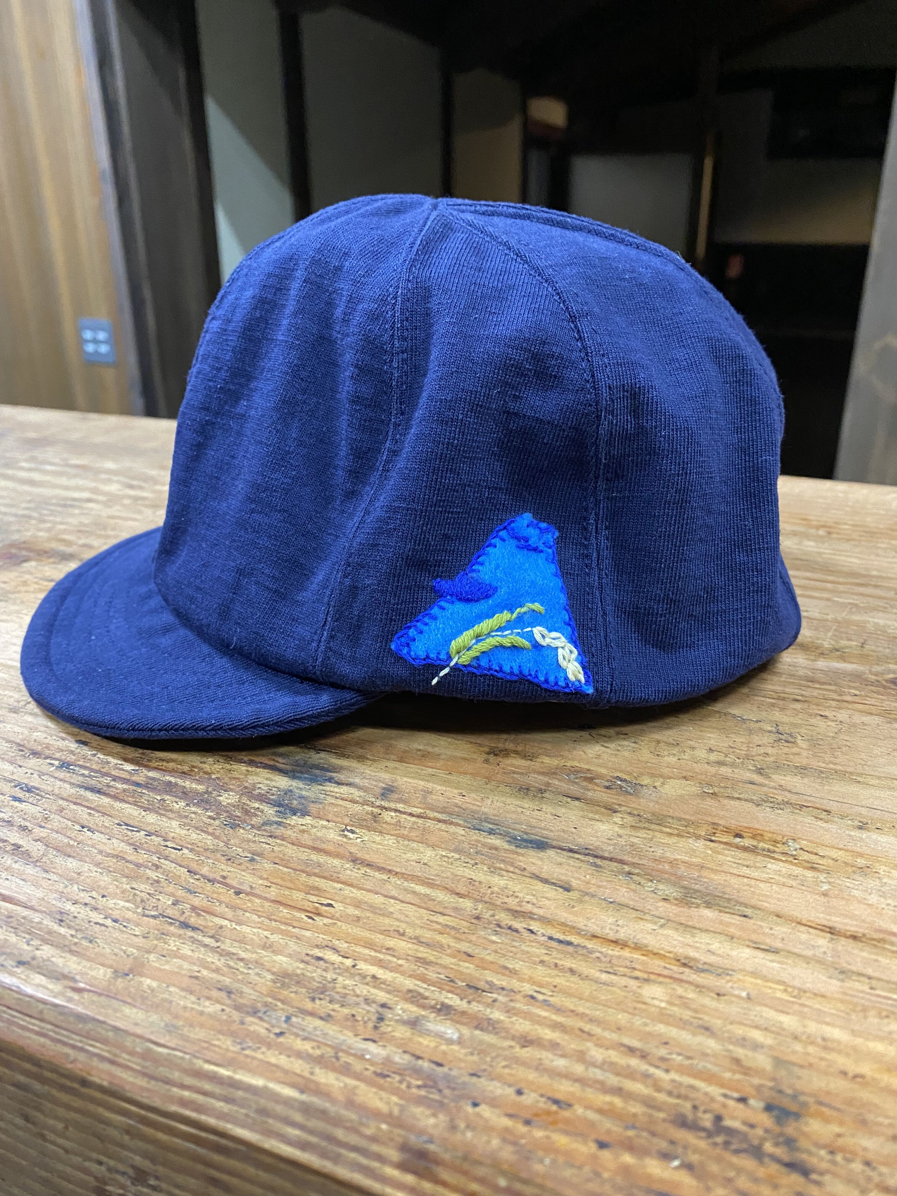 「和」のイメージを酢テンシル文字でアメリカンぽくがコンセプト。いろんな被り方が出来るよう前後とツバの裏面にもペイントしています。