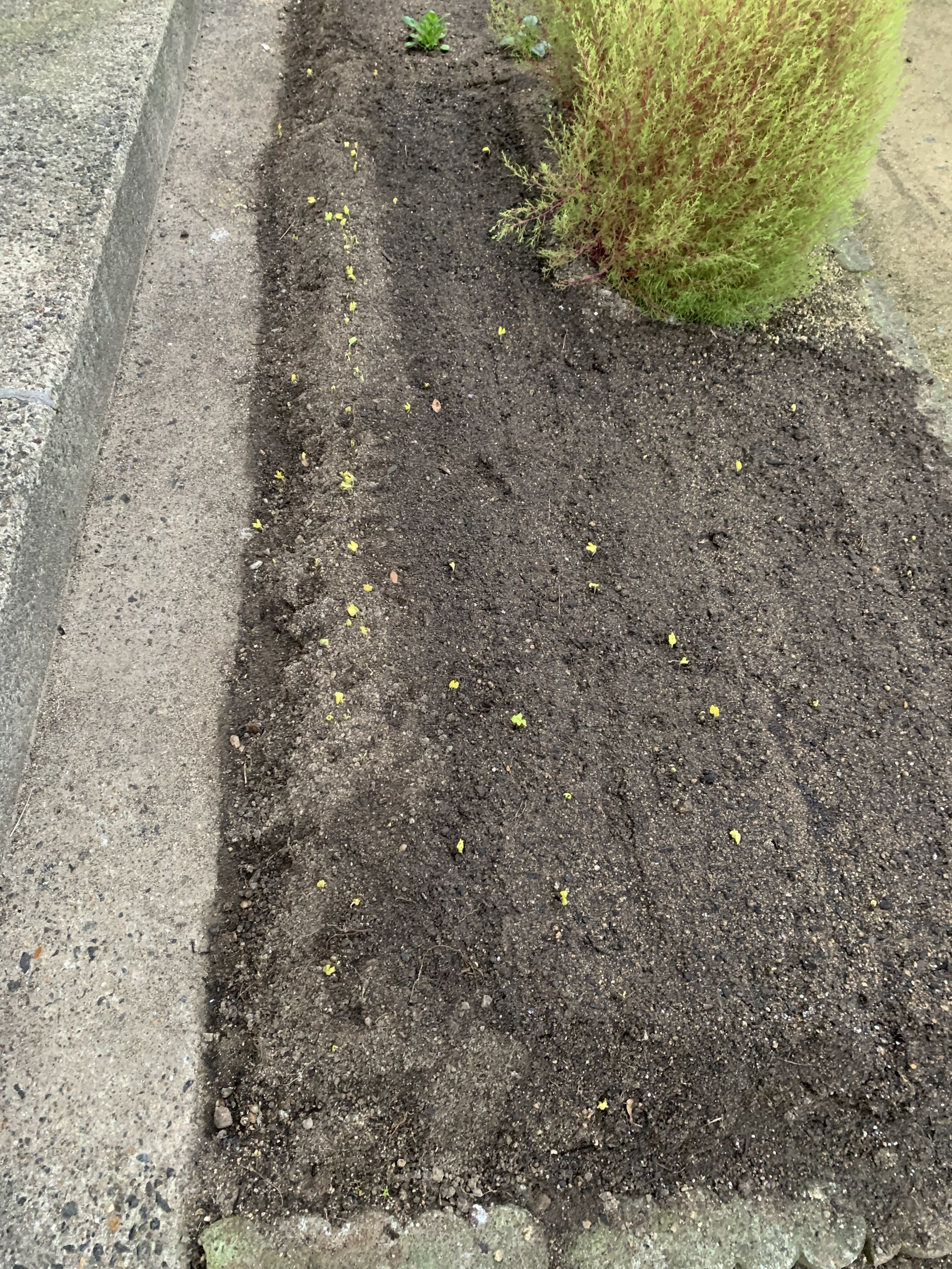 家内とは、「かなりの数の種が落ちているやろけど、今年と同じように来春には元気に芽が出てきたらいいね」と、話をしていましたがこんなに早く出るとは。
