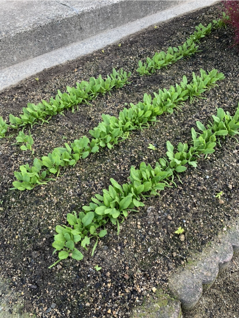 ほうれん草も種を撒き、芽が出て、大きくなってきたので、間引いていると、四十日経ってもいまだに朝顔の芽が、ほうれん草の間から顔を出ていました。