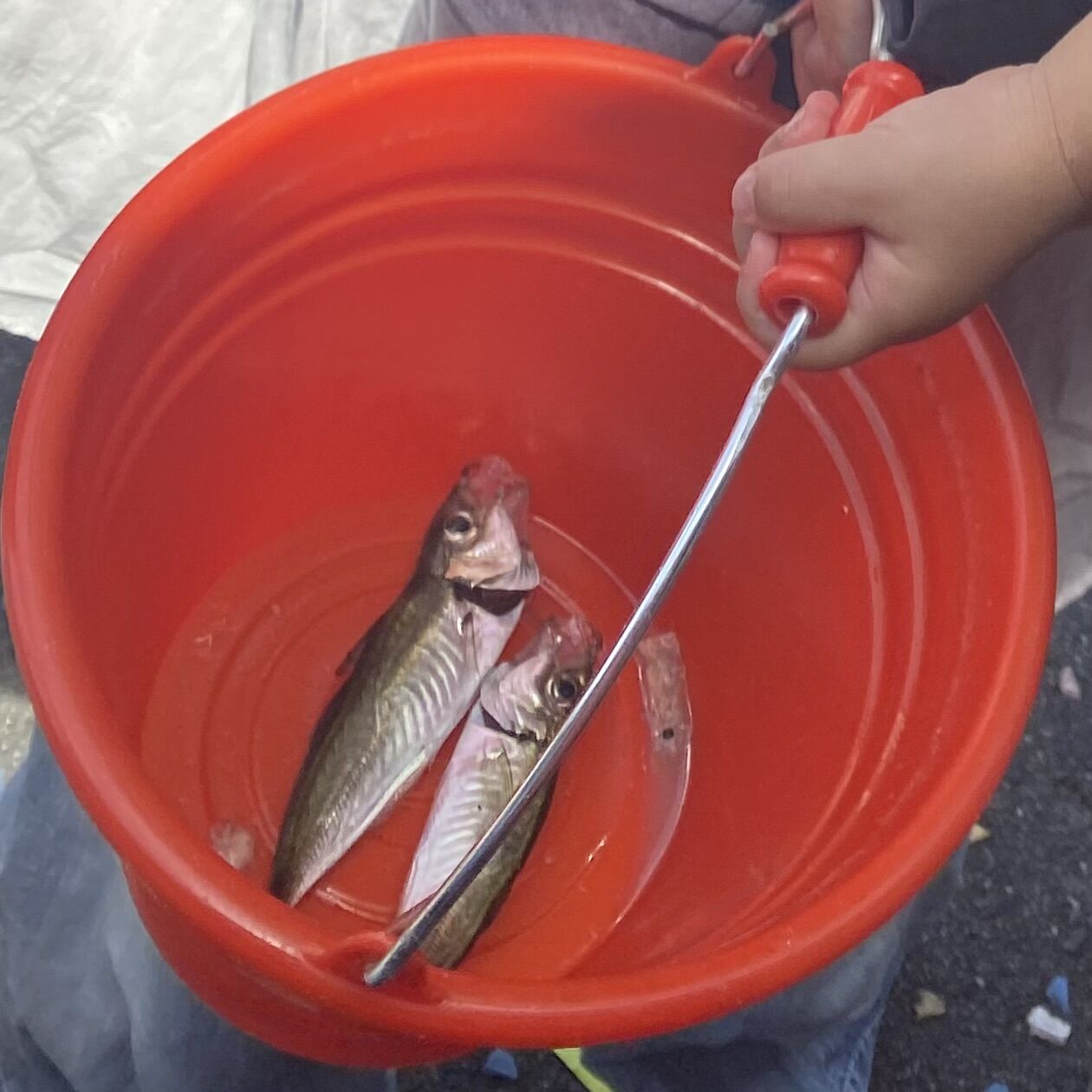 目玉アトラクションのアジ釣り🎣今回2匹しか釣れず、次男くん号泣だでしたがこのあと美味しく天ぷらでいただき機嫌もどりましたー🙃