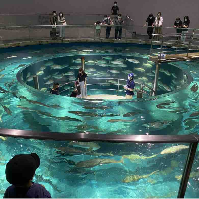 海遊館、ひめすいでもお馴染みの縦型水槽。