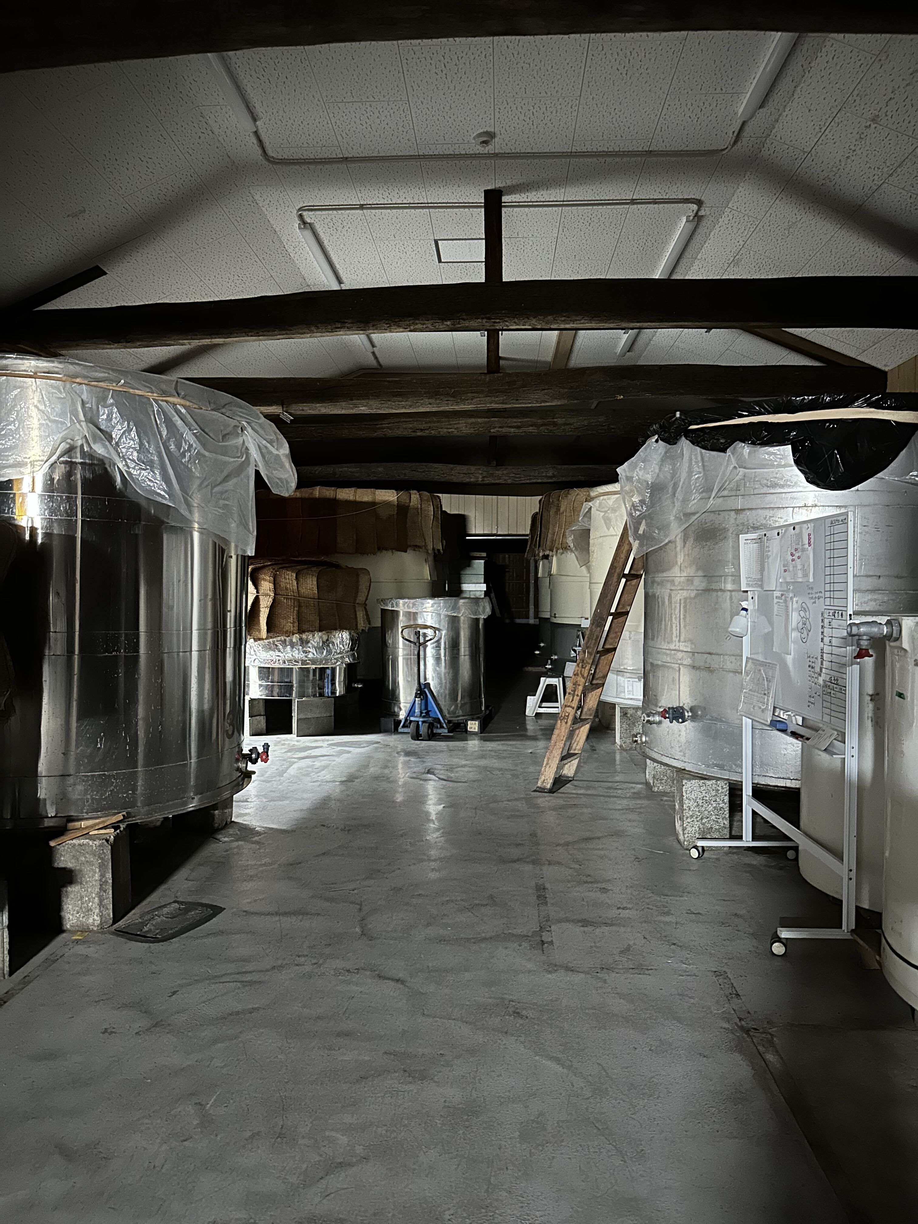 いつもは蔵人の作業の音や声がして賑やかですが、発酵蔵はシーンと静まり帰っています。耳を覚ますと外で虫が鳴いています。、、、秋ですねぇ。