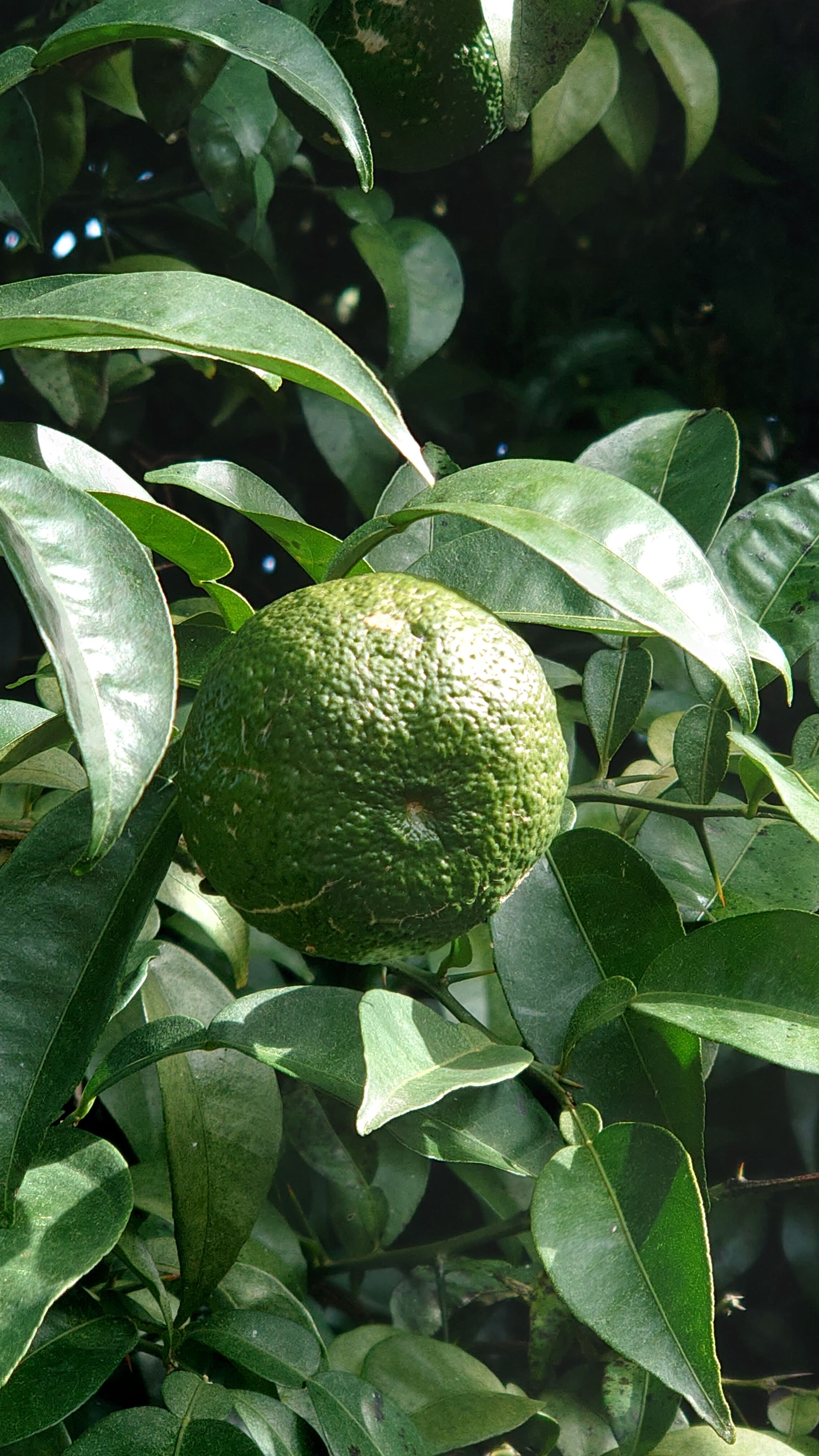 今はまだ緑色なので葉っぱの色に紛れて見つけにくいのですが、これがもう少し黄色く色づいてきたら見つけやすくもなるし、より美味しくなるそうです( *´艸`)