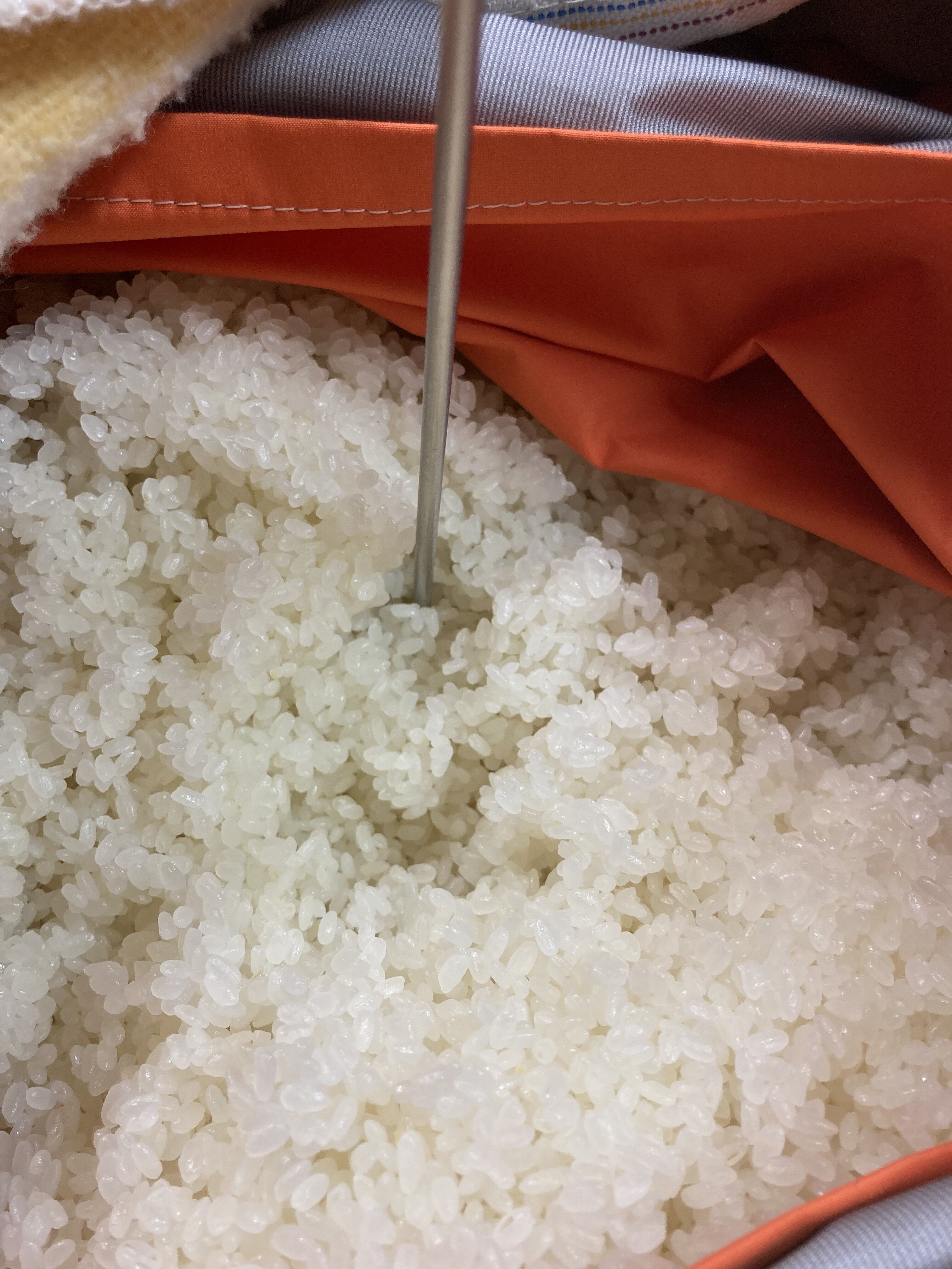 「もやし」が蒸米の中へ菌糸を伸ばしている途中です。