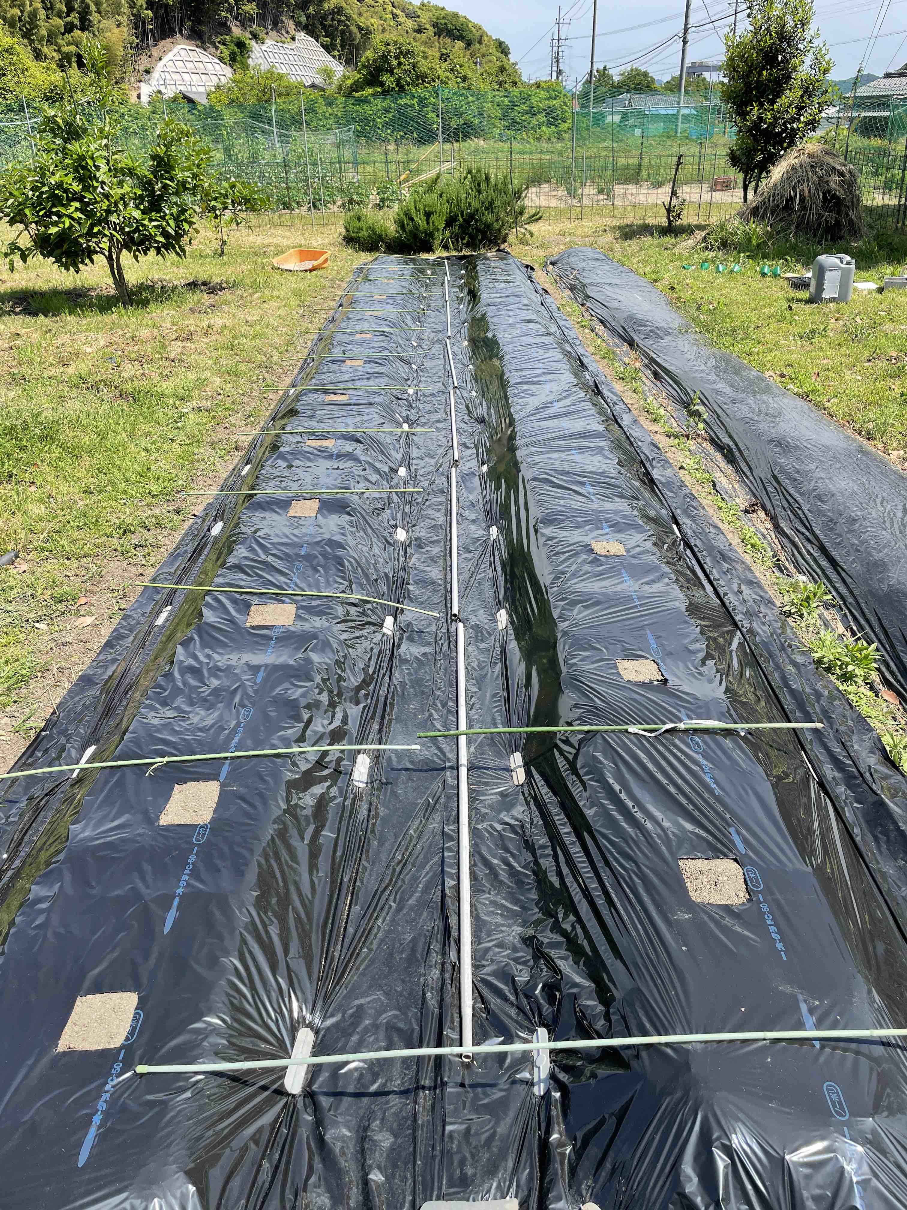 ずっと収穫となると?雑草問題になるわけで、ここはマルチを使って栽培することに決定!