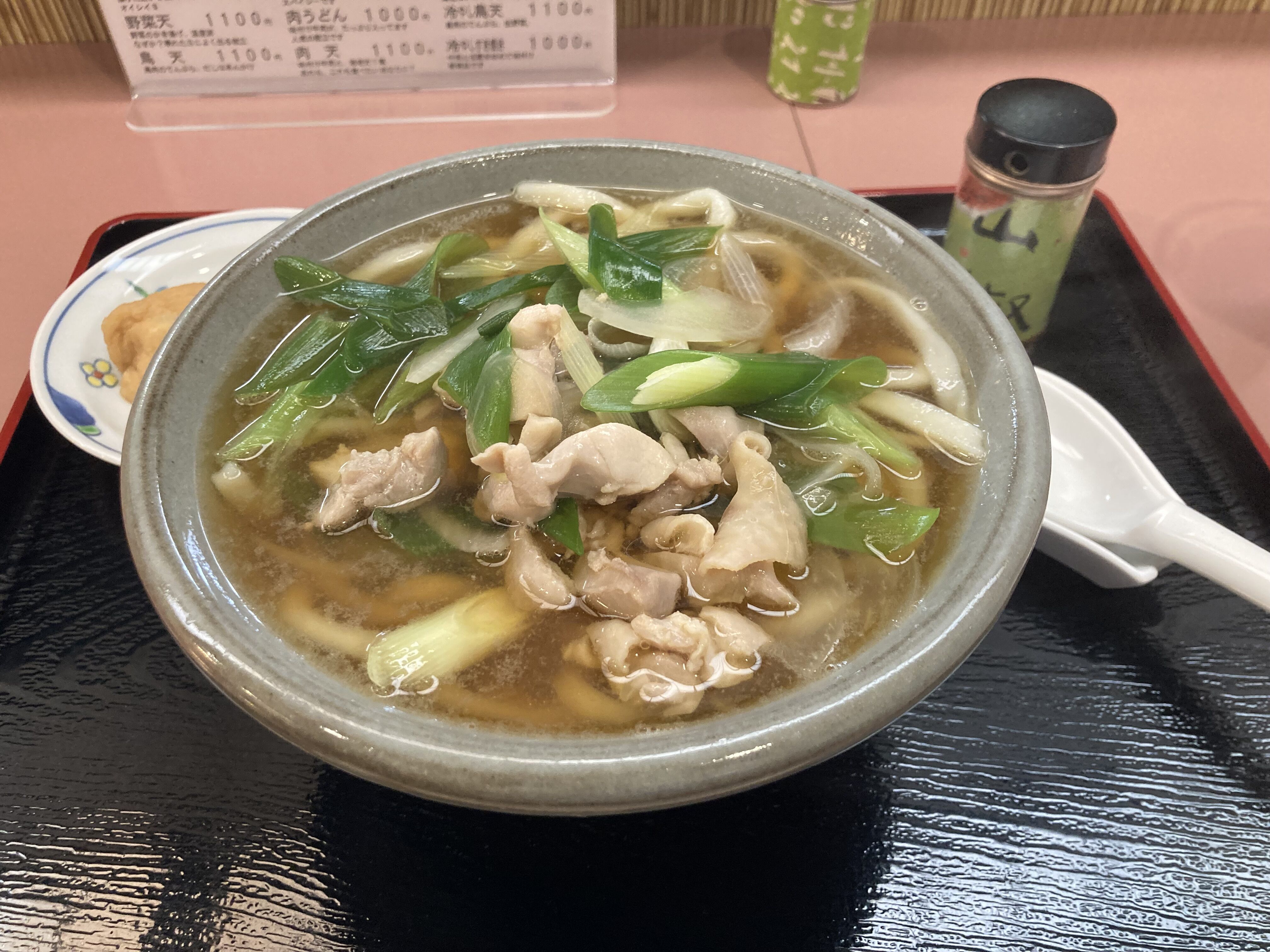 鳥なんば。具は鶏肉と葱のみ。お好みにやまつ辻田さんの山椒をどうぞ!