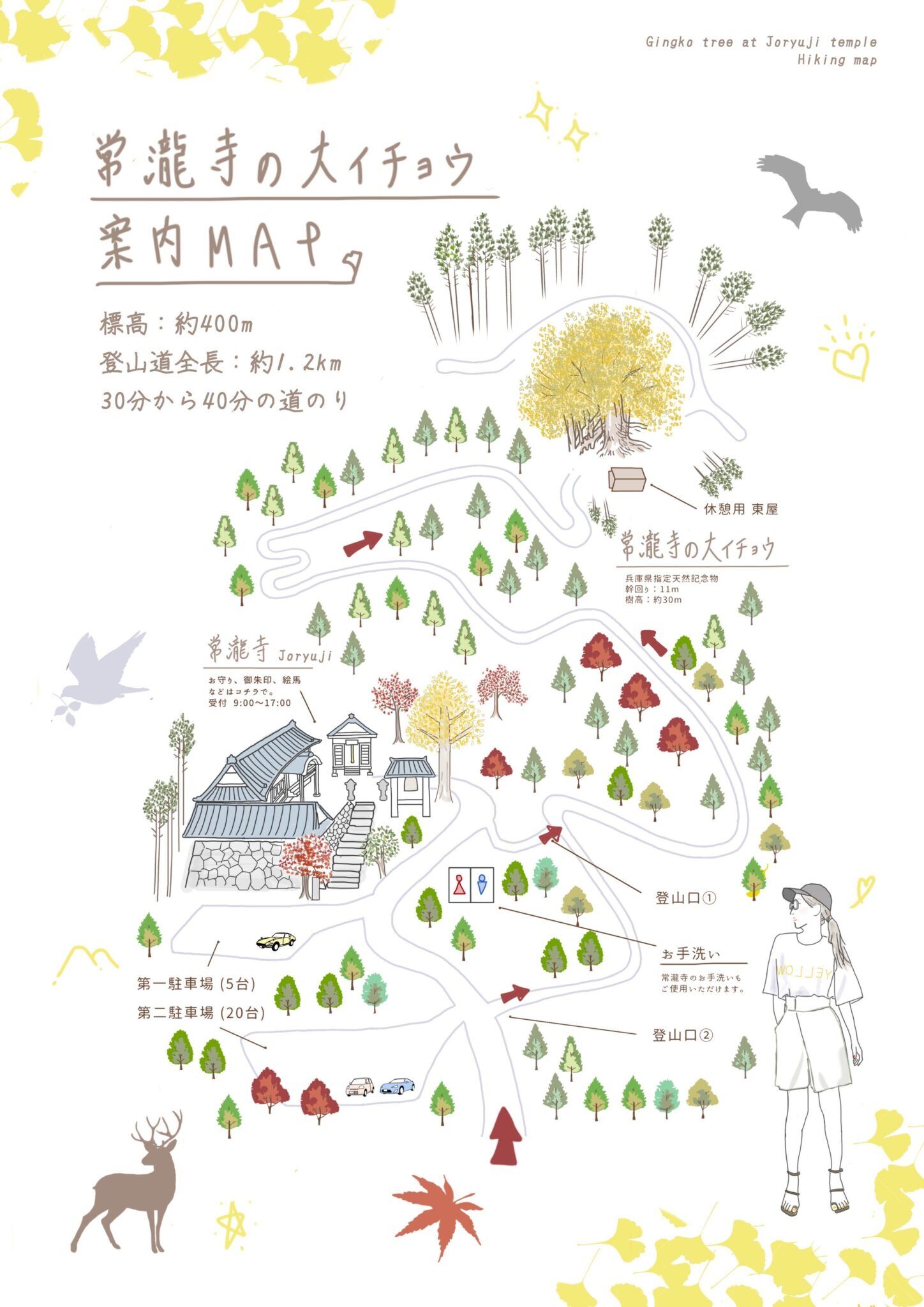 常瀧寺の駐車場からは1.2km(20分〜40分くらい)の軽い登山ですが、道も整備されており看板などもあるため迷う事はありません。