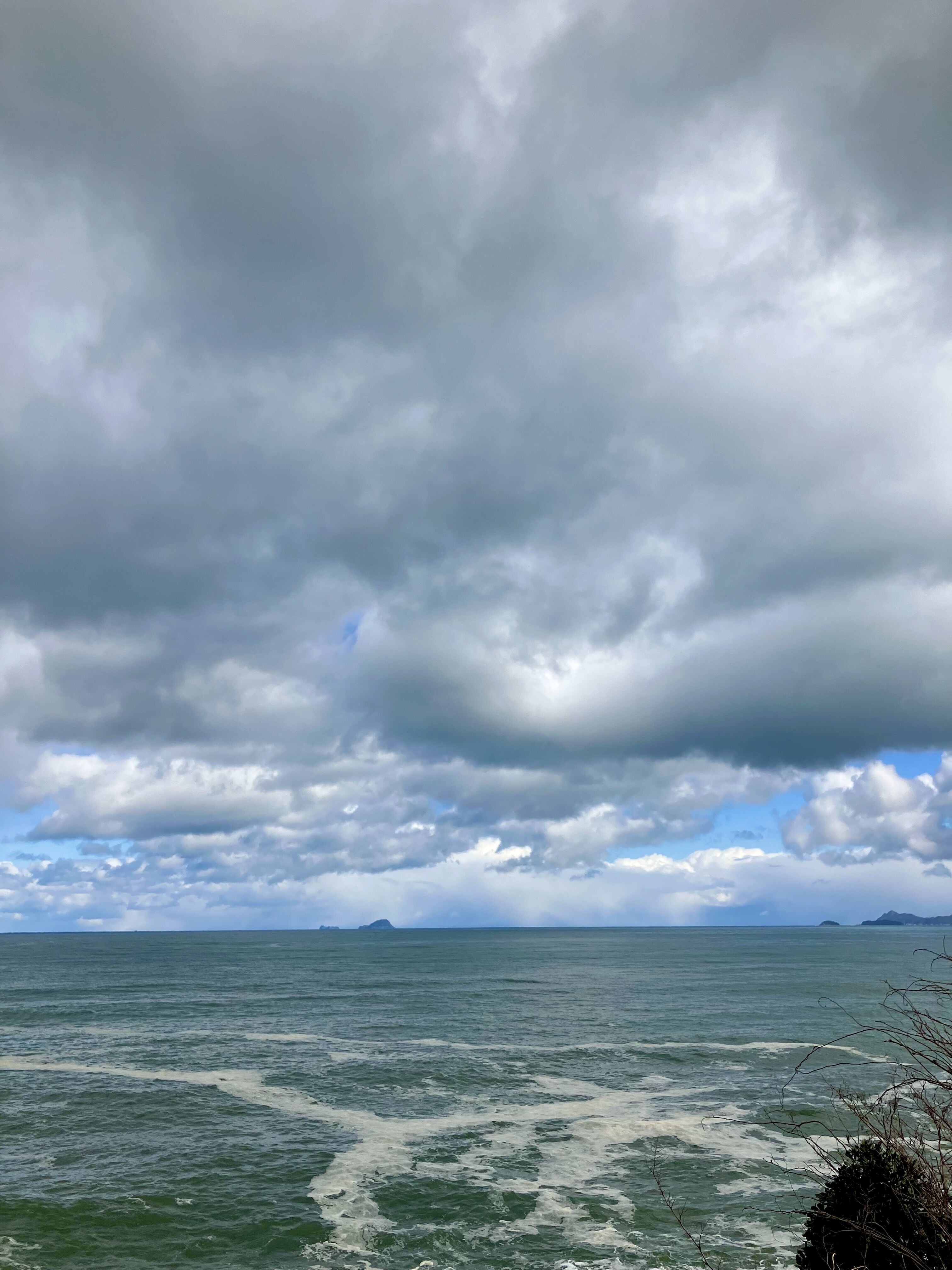 この海岸は水平線が見渡せるエリアです。途中、車を止めて景色を楽しむこともできます。