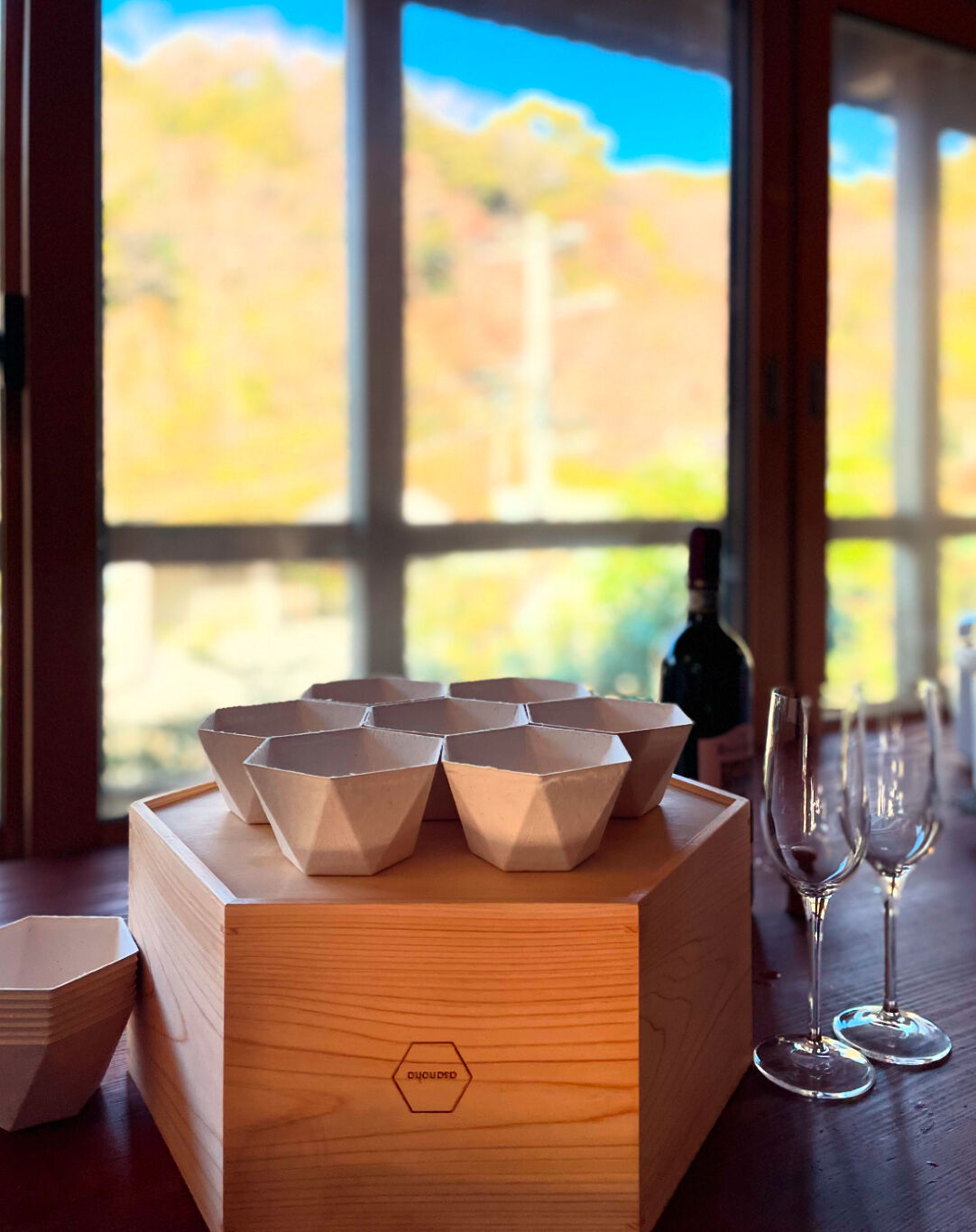 使い終えた後は、洗わずにそのまま返送することでトイレットペーパーの原料に。今回のような出張テマパ、大人数のパーティシーンでも、使い捨て容器を使用する罪悪感から解放されるなんとも機能美な器です。