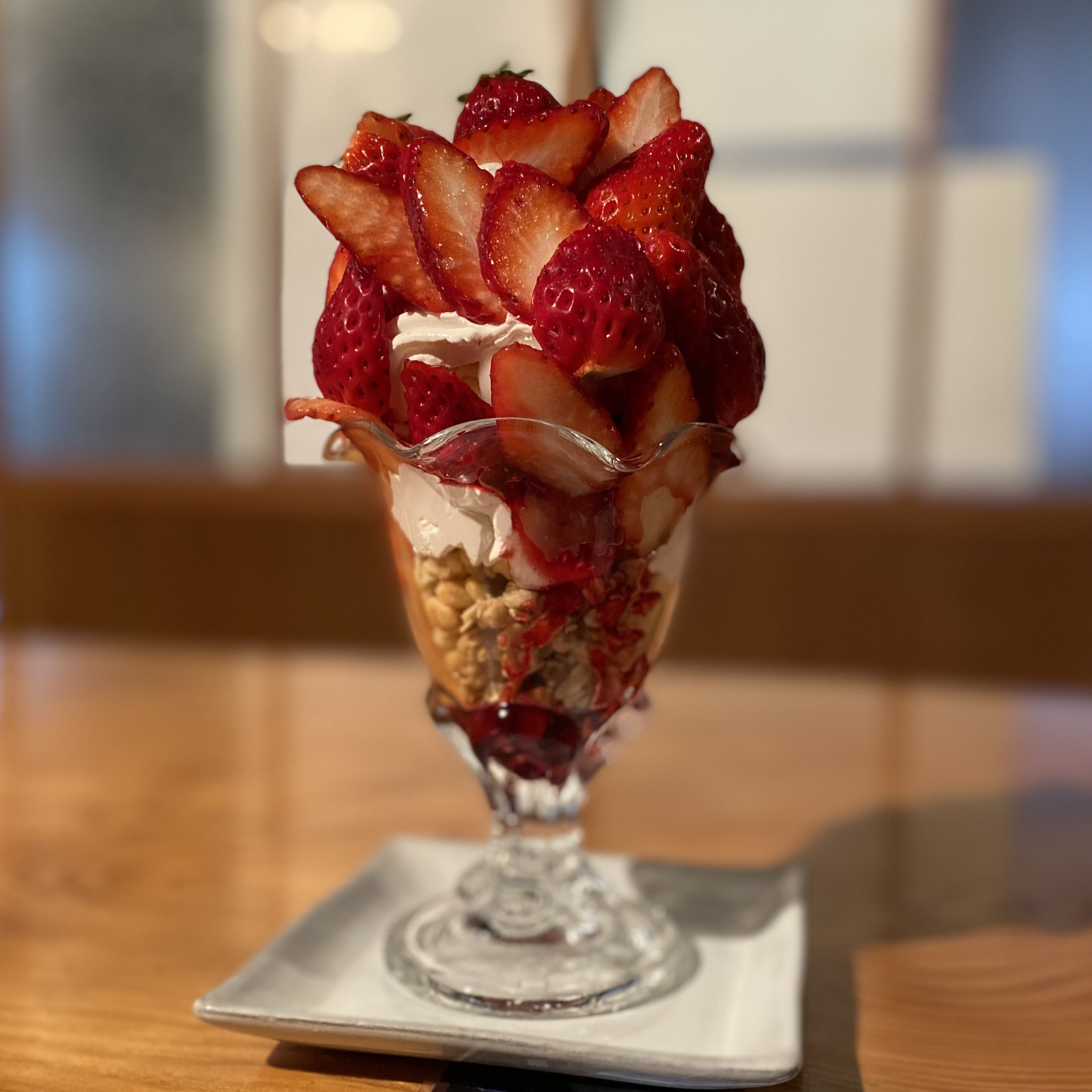 だいまるしょうゆカフェさんのいちごパフェ。いちごの量が凄まじく幸せな気分になれます😋