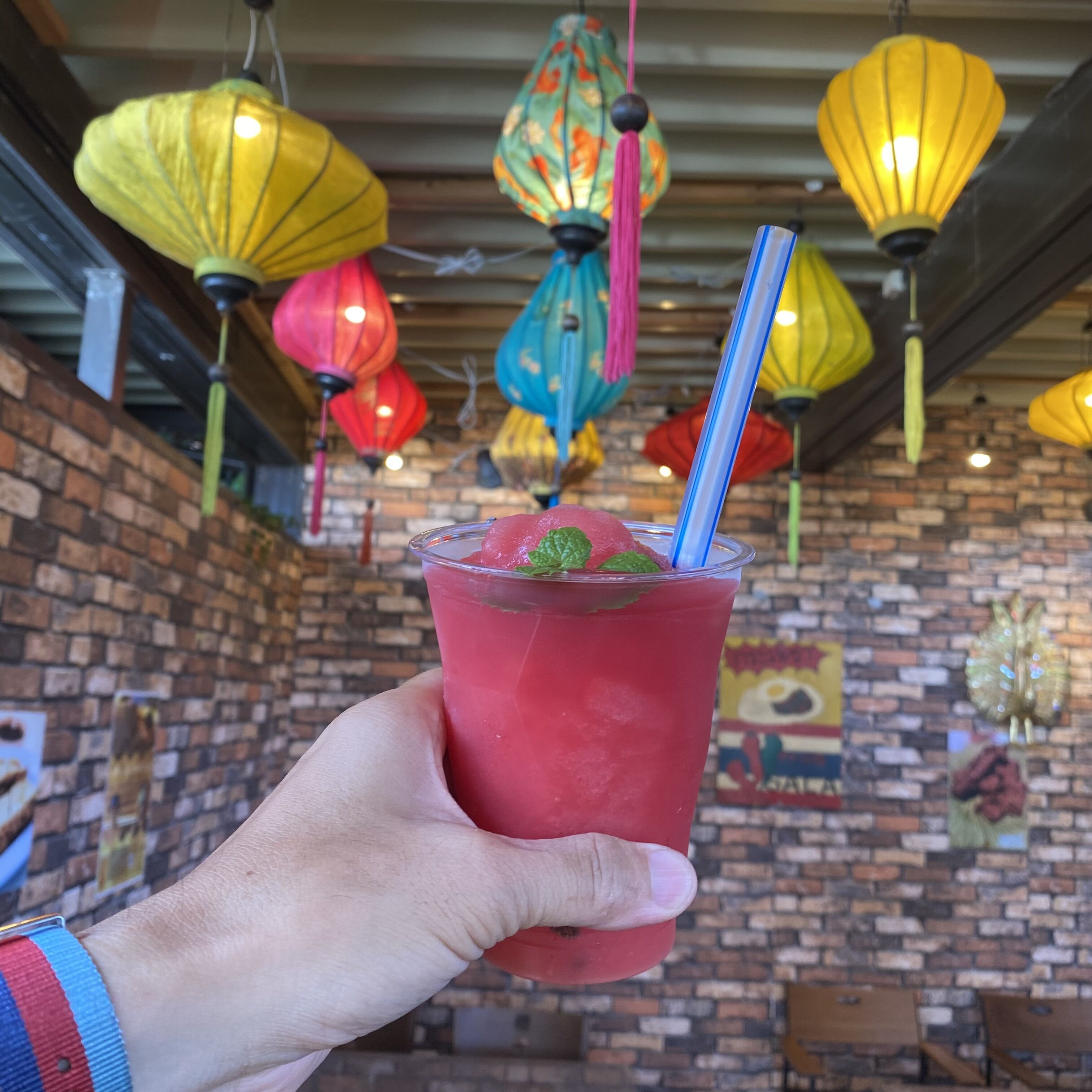 小天橋タイ料理salaさんのスイカスムージー。きーんとなるけも一気に飲みたくなる美味しさ😊