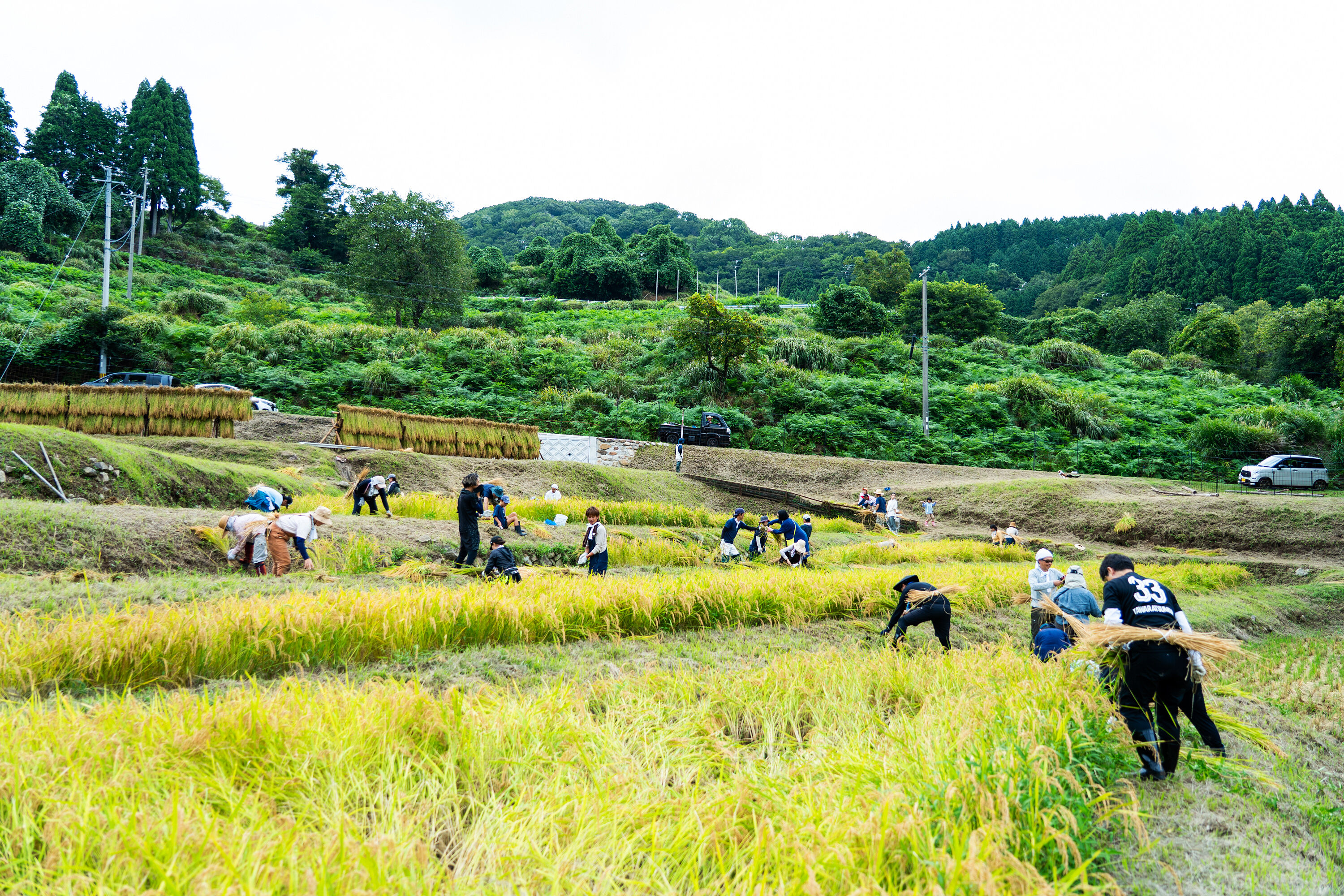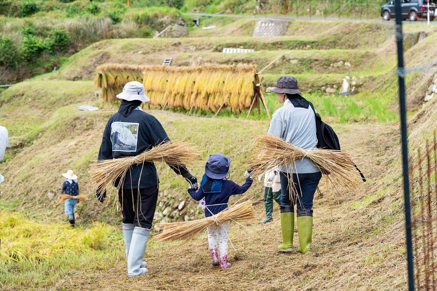 一面に広がっていた稲穂は、2日間の体験会を経て稲木にかけ終わりました。