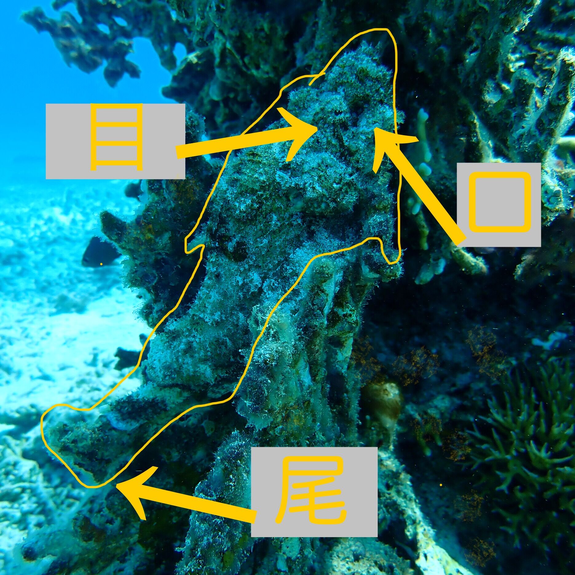 岩だと思ってじっと見ていると、実は目がこちらを見返していて、「あ、魚だったんだ!」と分かる瞬間が最高に面白いんです。
