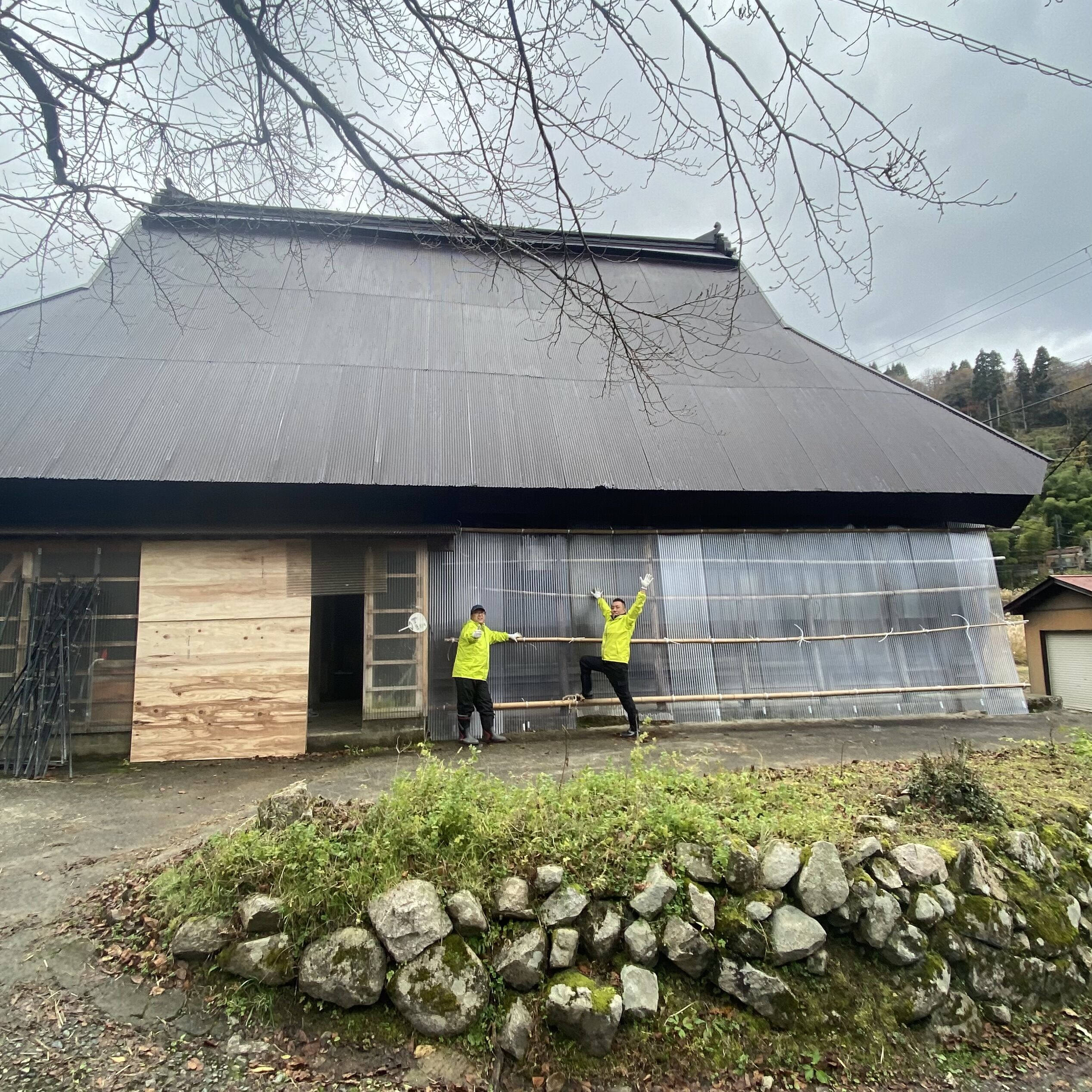 今回のミッションは、上世屋の活動拠点である【ぶーたん】の雪囲いと世屋姫神社横の田んぼの獣害柵の回収、稲木の解体でした❄️🐗