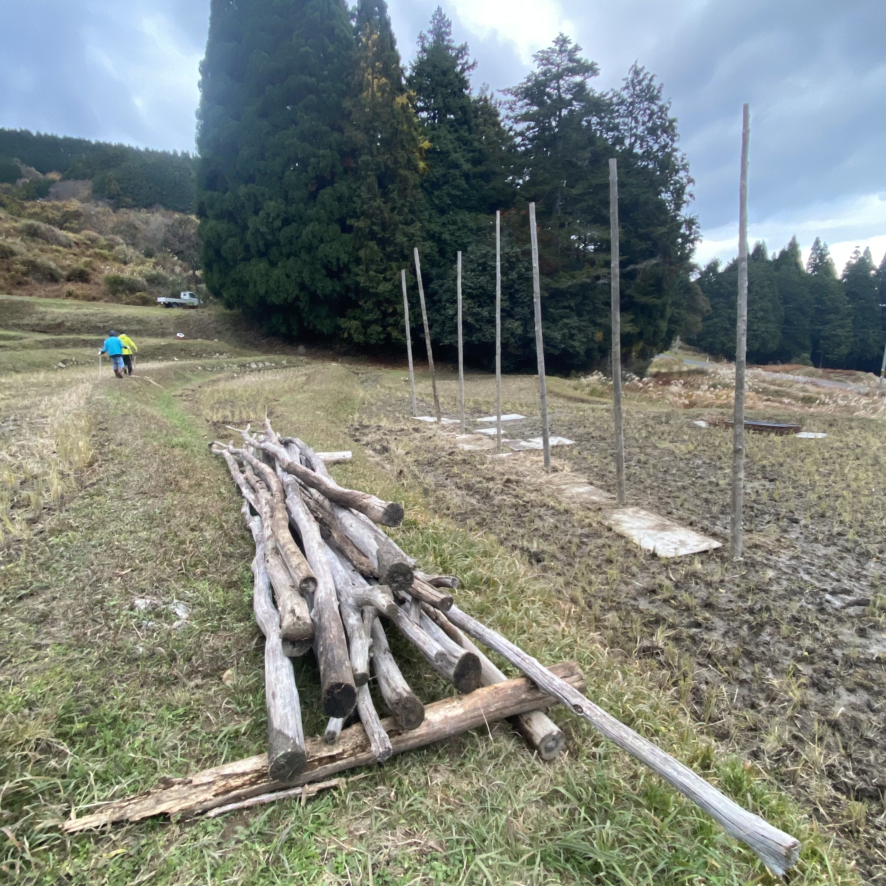 9月の稲刈り体験会で使った稲木の竹と木を取り外していきます。1本が10メートルくらいあり、なかなかの重さでした💪持ち運びはめっちゃパワーが必要です💪💪