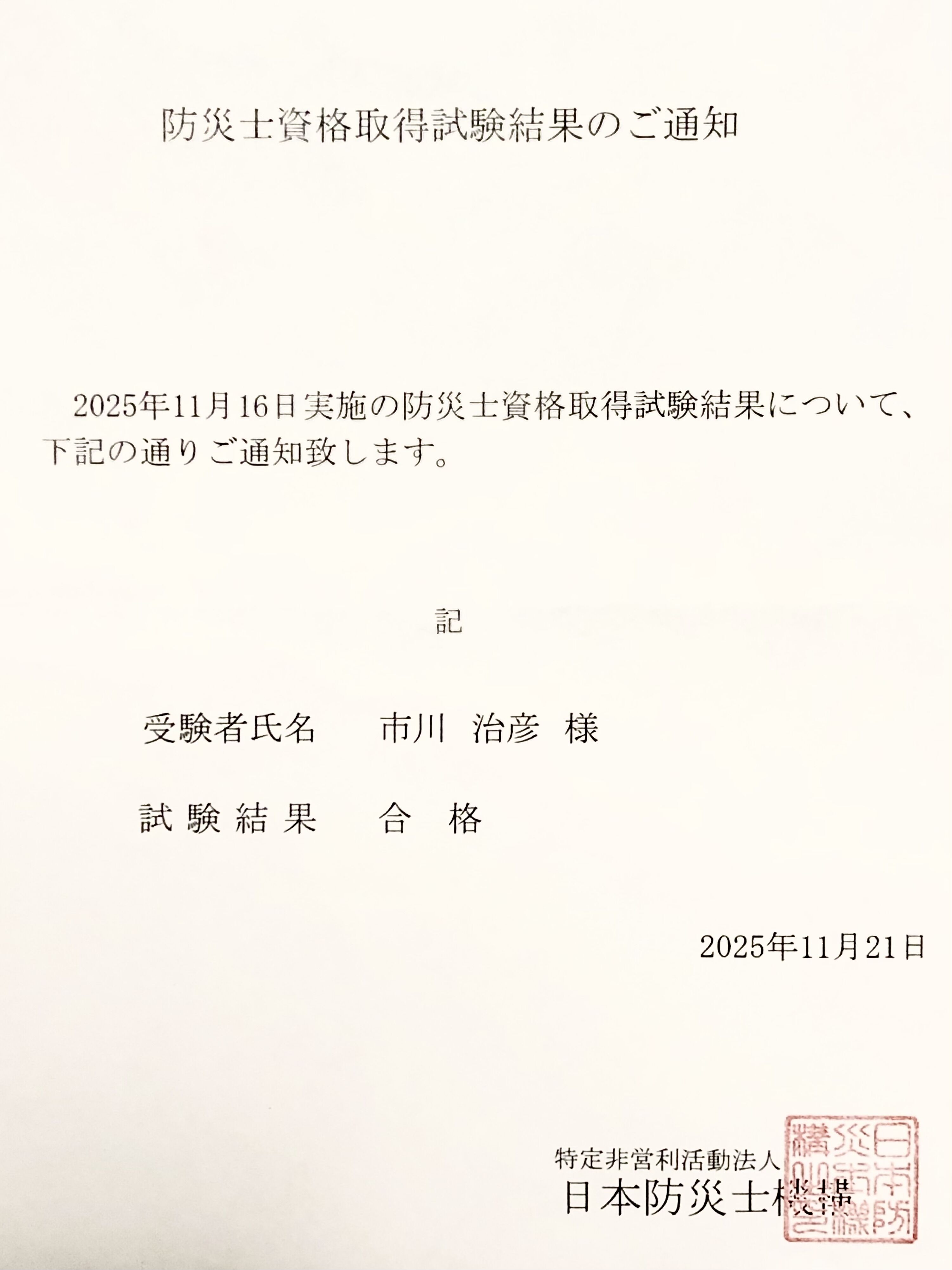 奥さんが防災士なので、休日に奥さんの活動を手伝う事があったり、その他にも防災に関わる事が多かった為、防災士になろうと思いました。