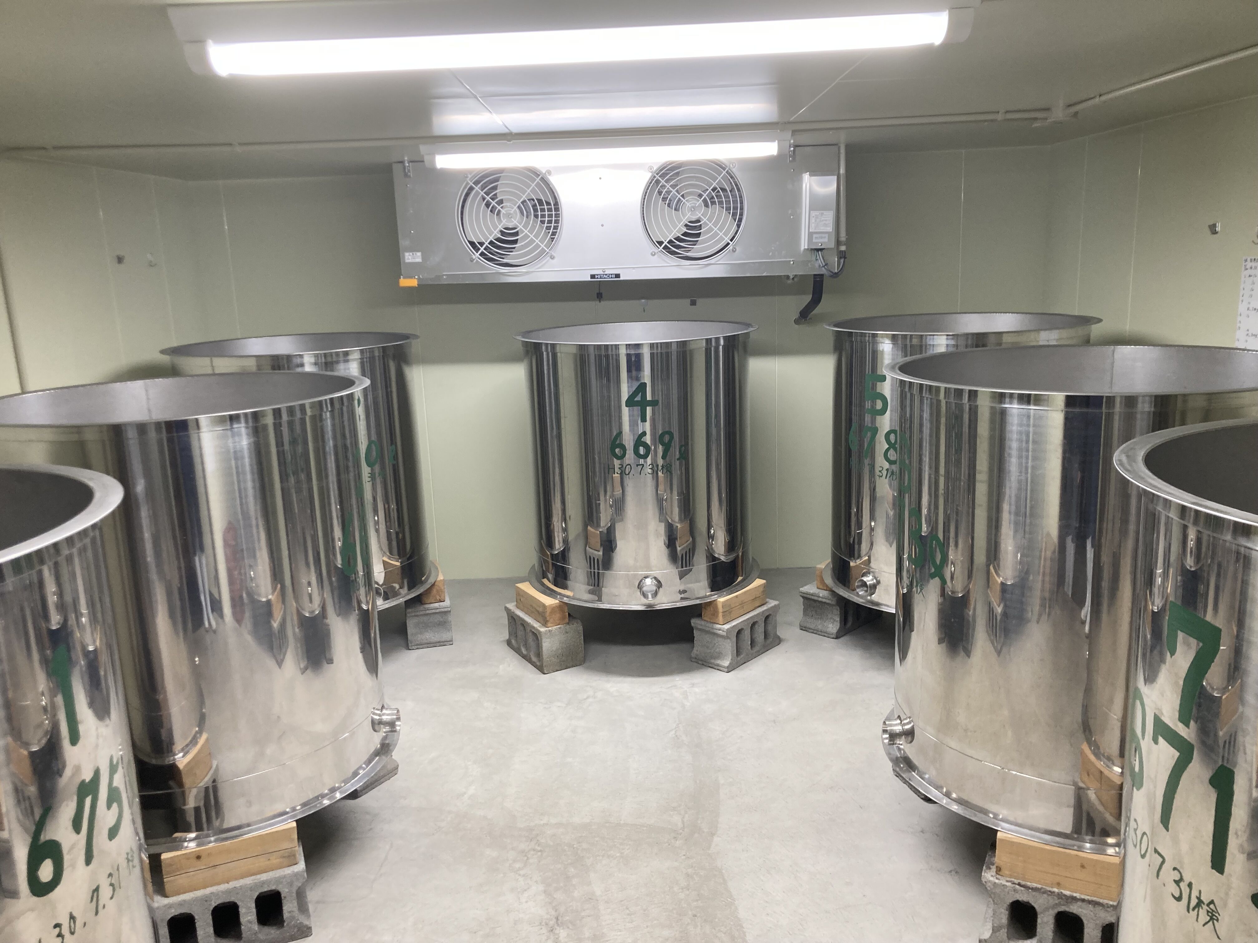 7℃で保たれた酒母室で、常に7本を並行して仕込んでいます。