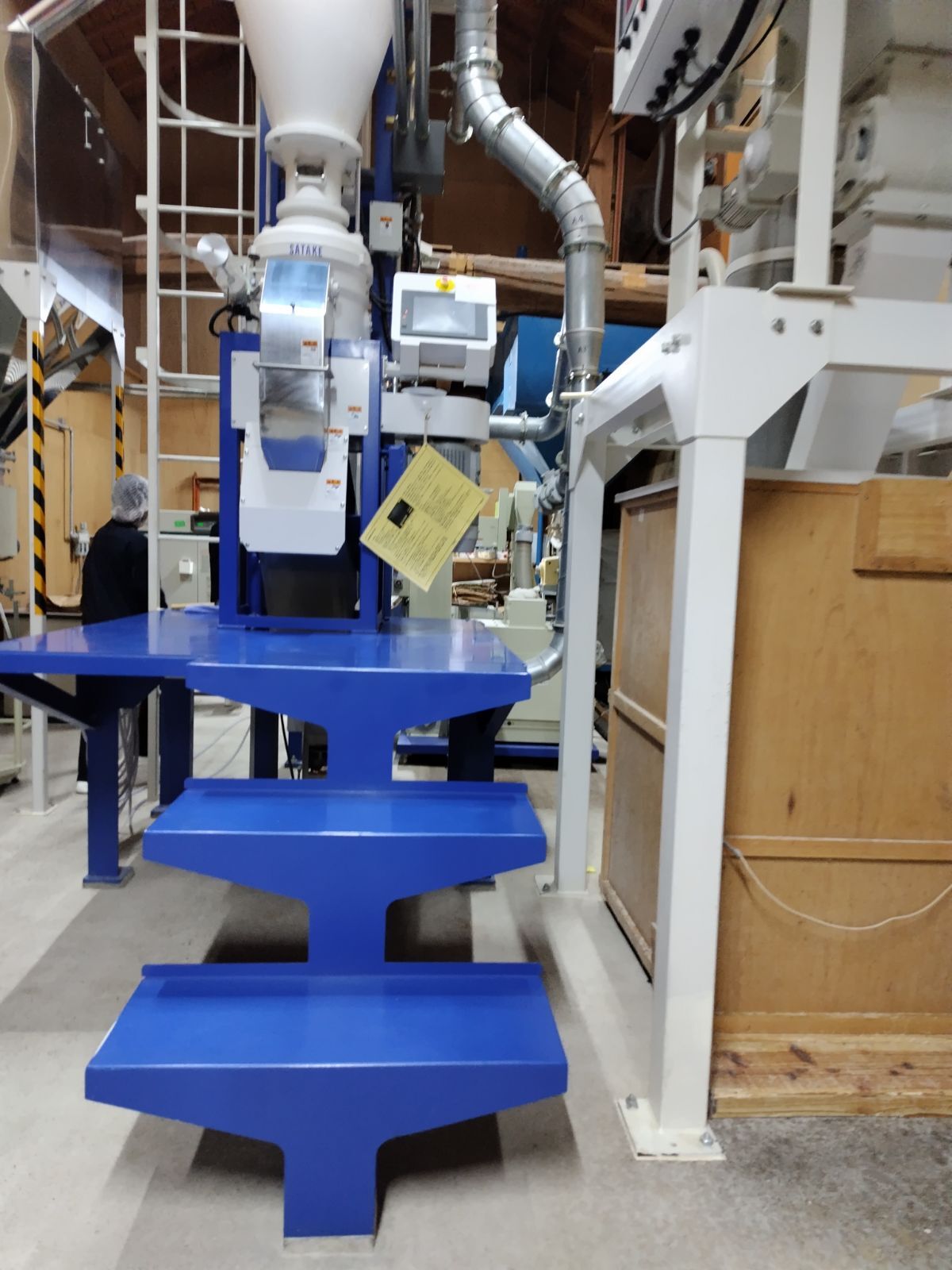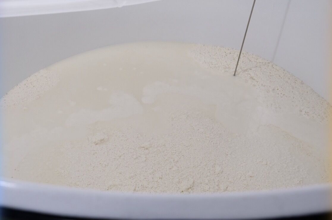 こちらはお米に種麹を振りかける様子です。お米が自動で流れていきます。